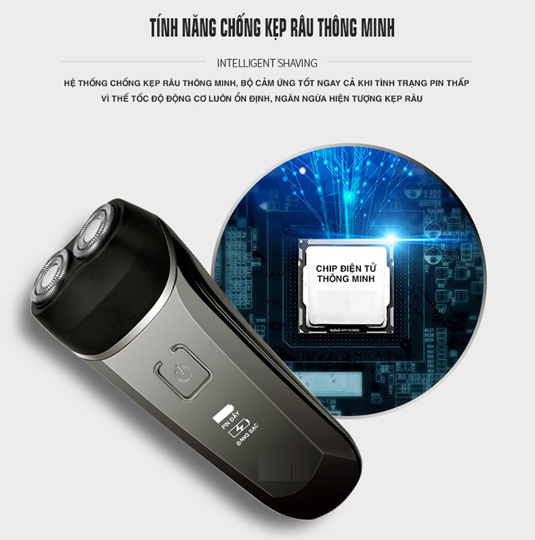 - Thiết kế hệ thống lưỡi kép xoay vòng giúp cắt tỉa râu nhanh chóng và hiệu quả. Khả năng quay 2 vòng điều chỉnh tương thích với độ cong của cằm. Hệ thống đầu cạo được thiết kế phù hợp với đường cong của khuôn mặt và cổ giúp bạn thoải mái khi cạo, bạn có thể tận hưởng cảm giác khoan khoái khi cạo râu mà không lo tổn hại cho làn da của bạn nhờ thiết kế lưỡi dao cạo không tiếp xúc trực tiếp với da.