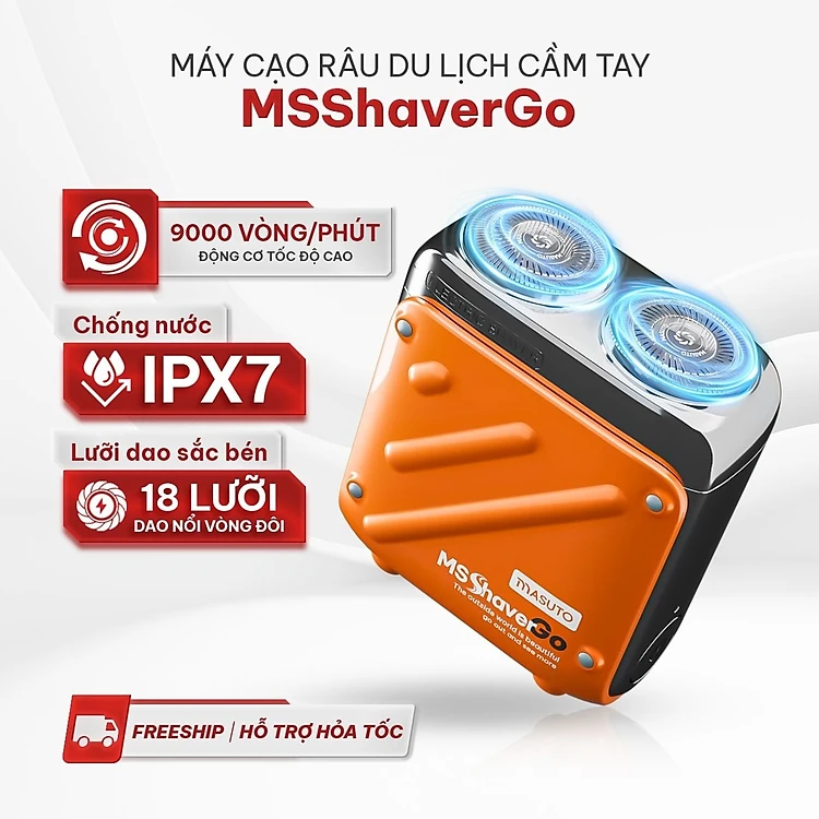 Máy cạo râu Masuto MS ShaverGo lưỡi dao kép mỏng tự mài, chống nước IPX7, cạo râu dễ dàng, nhanh chóng - Hàng chính hãng