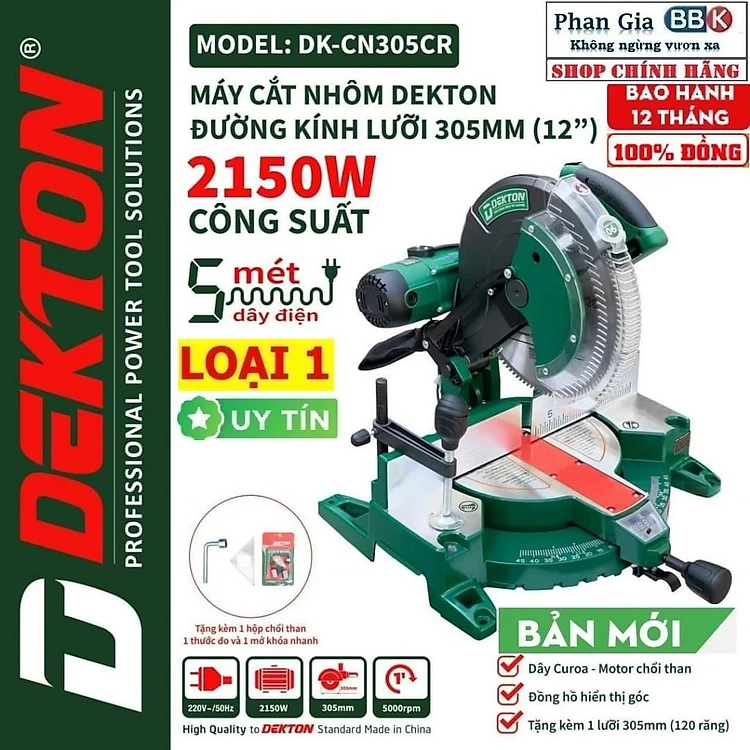 MÁY CẮT NHÔM DEKTON 305 2150W chính hãƞg, CÓ ĐỒNG HỒ HIỂN THỊ XOAY GÓC ĐIỆN TỬ(NEW)