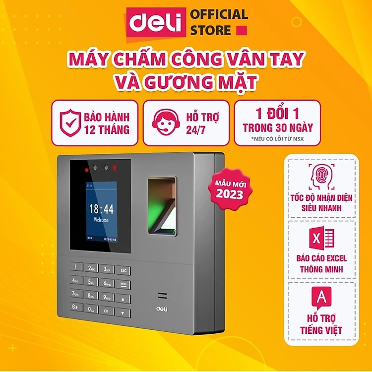 Máy Chấm Công Quét Vân Tay Và Nhận Dạng Khuôn Mặt DELI Mẫu Mới - Hàng Chính Hãng - Thiết Bị Văn Phòng Màn Mình LCD 2.4" Có Tiếng Việt ES161