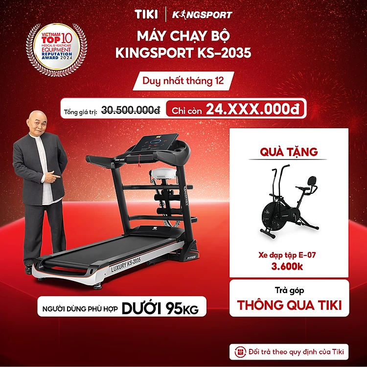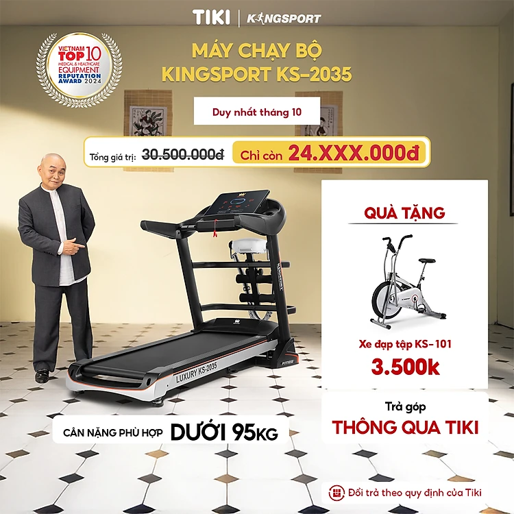 Máy chạy bộ KINGSPORT KS-2035 đa năng, thao tác phím cảm ứng, thiết kế sang trọng cứng cáp, kèm đai massage và thanh gập bụng, cân nặng phù hợp từ dưới 90-95kg