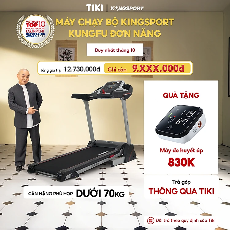 Máy chạy bộ KINGSPORT Kungfu đơn năng, tiết kiệm điện năng, gấp gọn tại nhà