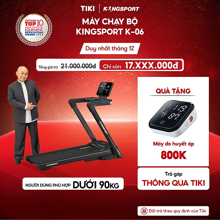 CHỈ GIAO MIỀN BẮC | Máy chạy bộ KINGSPORT Legend K-06 Đơn Năng với nâng dốc tự động, hệ thống giảm sốc bằng lò xo, động cơ DC tiết kiệm điện