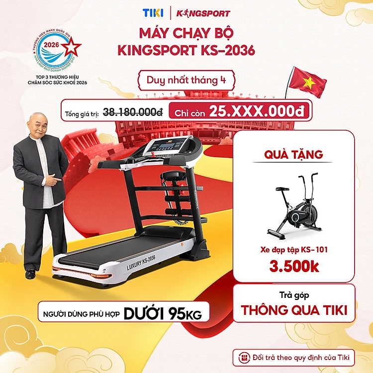 Miễn phí lắp đặt | Máy chạy bộ tại nhà Kingsport Luxury KS-2036 có chức nâng dốc tự động, kèm theo đai massage và thanh gập bụng