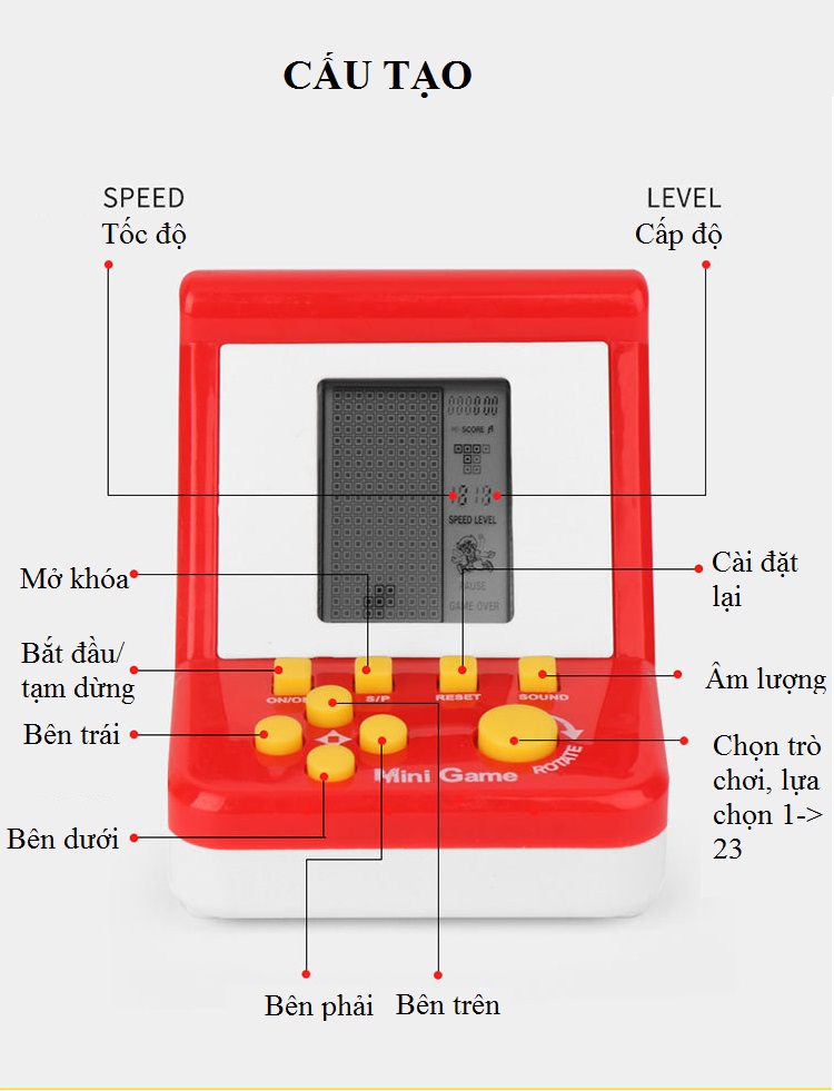 Sản phẩm máy chơi điện tử là sản phẩm được nhiều bạn yêu thích với thiết kế đơn giản, game thú vị với những game xếp hình, xếp gạch, tránh máy đây là máy chơi game giải trí được nhiều bạn yêu thích, máy nhỏ gon có thể bỏ túi được.