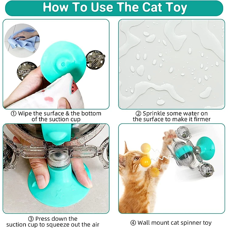 【Đồ chơi mèo với cốc hút】 Đồ chơi mèo tương tác được làm bằng vật liệu ABS và thân thiện với môi trường và an toàn, an toàn, không độc hại và không mùi. Chiếc cốc hút đồ chơi mạnh mẽ có thể bị kẹt trên tất cả các bề mặt mịn hoặc thẳng đứng như gạch, kính, cửa sổ, bồn tắm, gỗ phủ hoặc nhựa. Xin lưu ý rằng rắc một ít nước lên bề mặt có thể làm cho cốc hút chắc chắn hơn.
