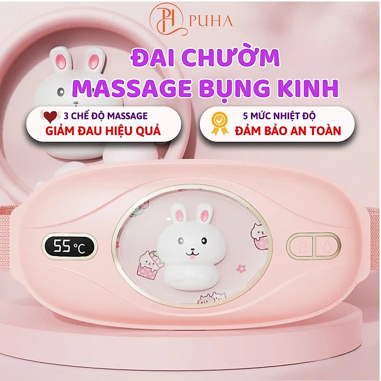 Máy chườm nóng hỗ trợ giảm đau bụng kinh PUHA, có 5 mức nhiệt, Pin 3600MAH , sạc UBS, món quà ý nghĩa tặng người yêu
