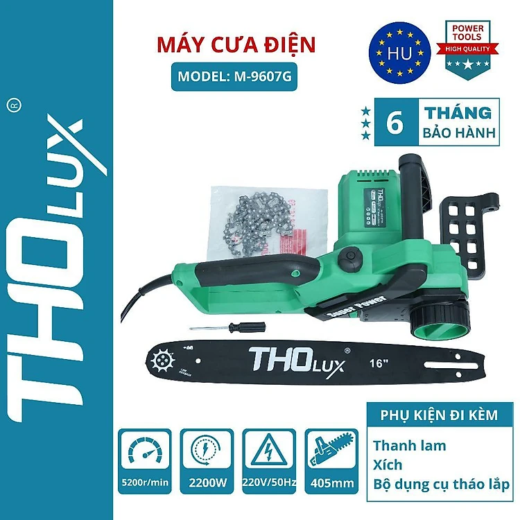 Máy Cưa Xích Động Cơ Điện Tholux Công Suất Lớn 2200W Chính Hãng Lưỡi Cưa 405mm Động Cơ Lõi Đồng