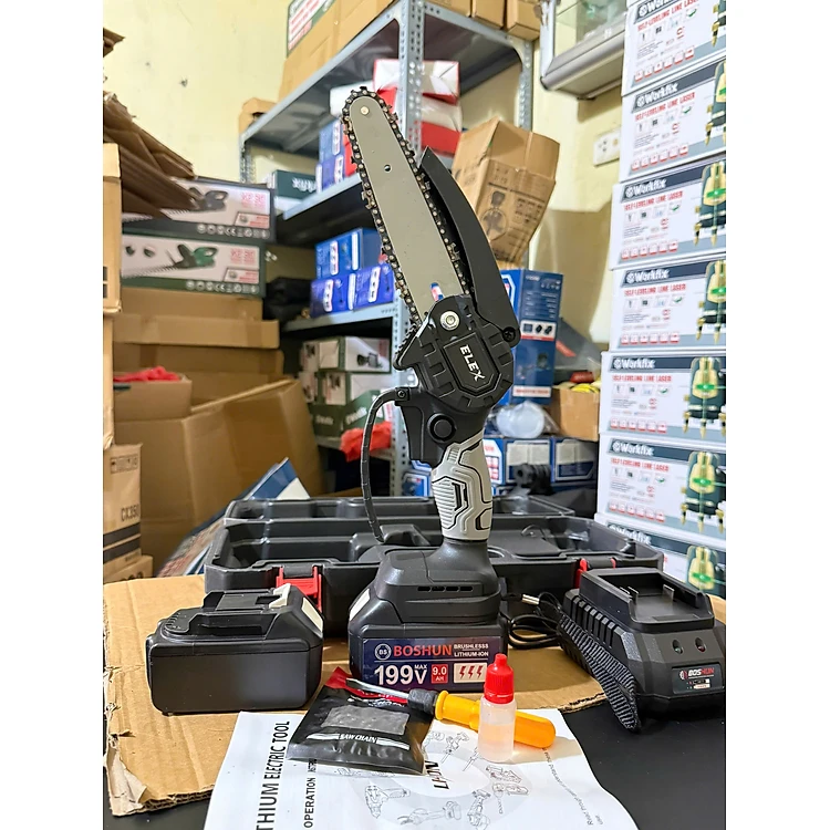 Máy Cưa Xích Dùng PIN Elex Lõi Đồng Mạnh Mẽ Bền Bỉ - Máy Cưa Cầm Tay Mini Cưa Tất Cả Loại Gỗ Siêu Khỏe, Tiện Lợi Dùng Cho Mọi Gia Đình, Bảo Hành 1 Năm