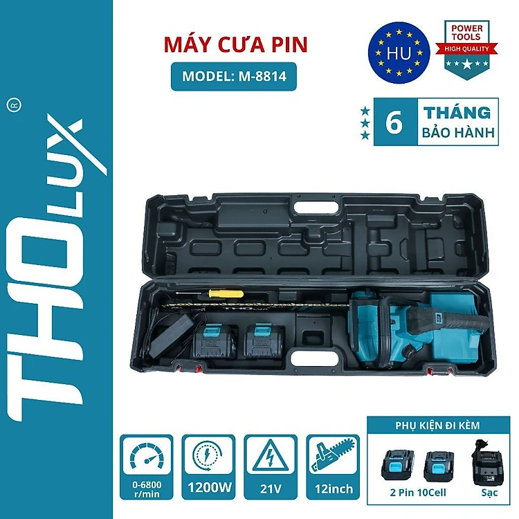 Máy cưa xích pin Tholux M-8814 1200W, Chiều dài lam 12inch, pin 10cell