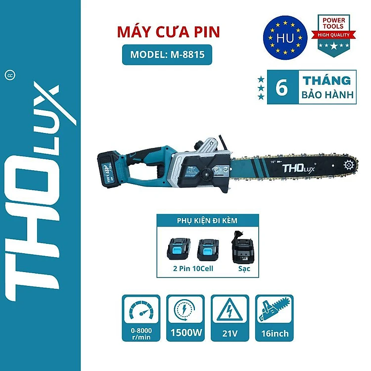 Máy cưa xích pin Tholux M-8815 1500W, Chiều dài lam 16inch, pin 10cell
