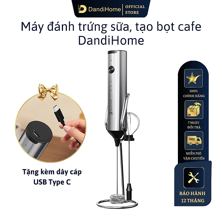 Máy đánh bọt cafe cầm tay DandiHome có giá treo, sạc điện, 10w, hàng chính hãng bảo hành 12 tháng
