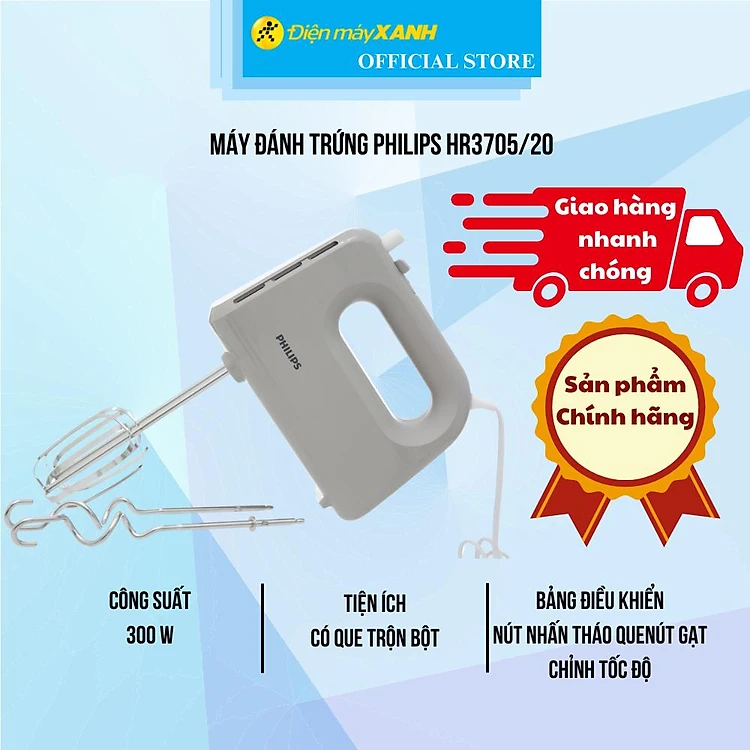 Máy đánh trứng Philips HR3705/20 - Hàng Chính Hãng