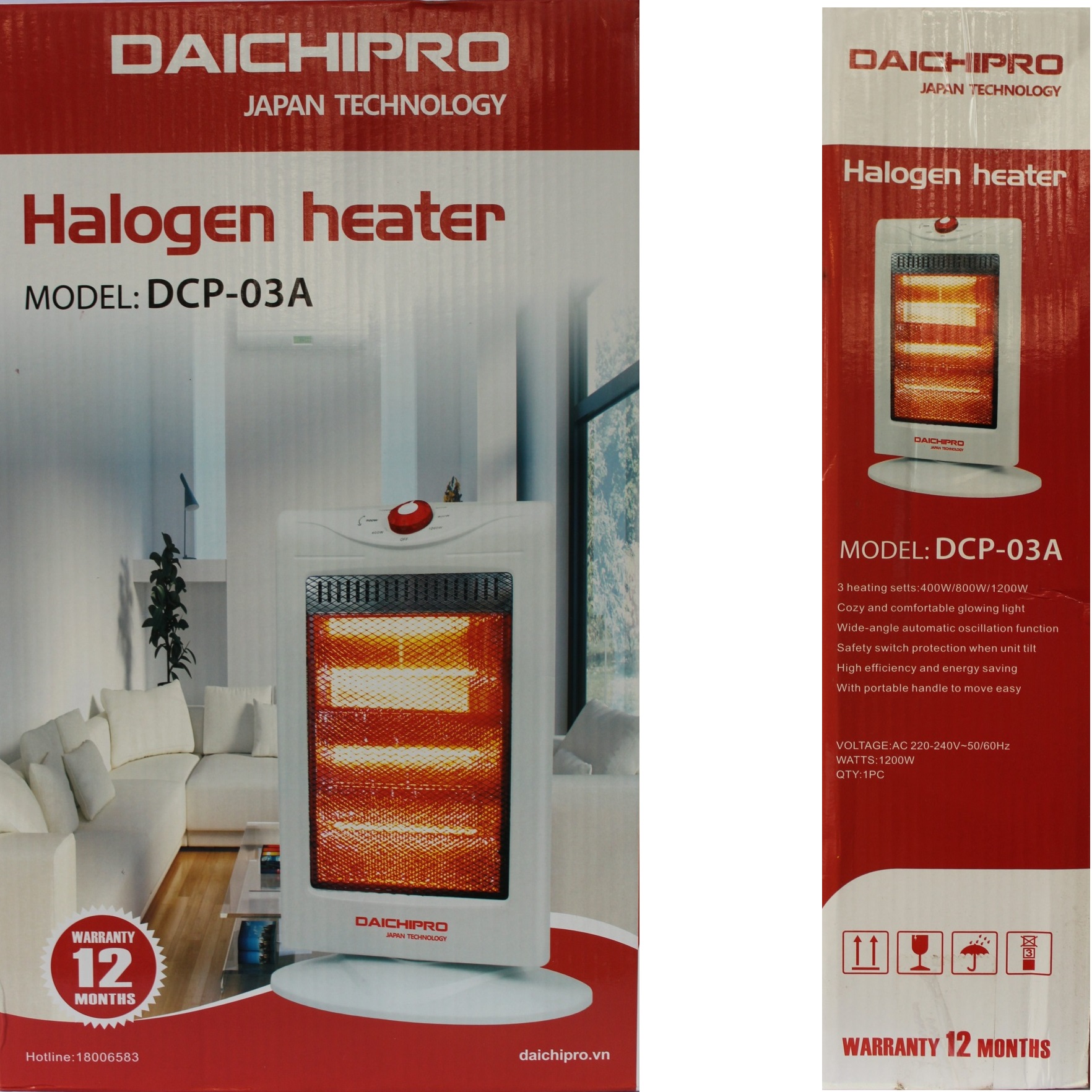 Máy Đèn Sưởi Điện 3 Bóng Halogen Daichipro DCP-03A - Chính Hãng