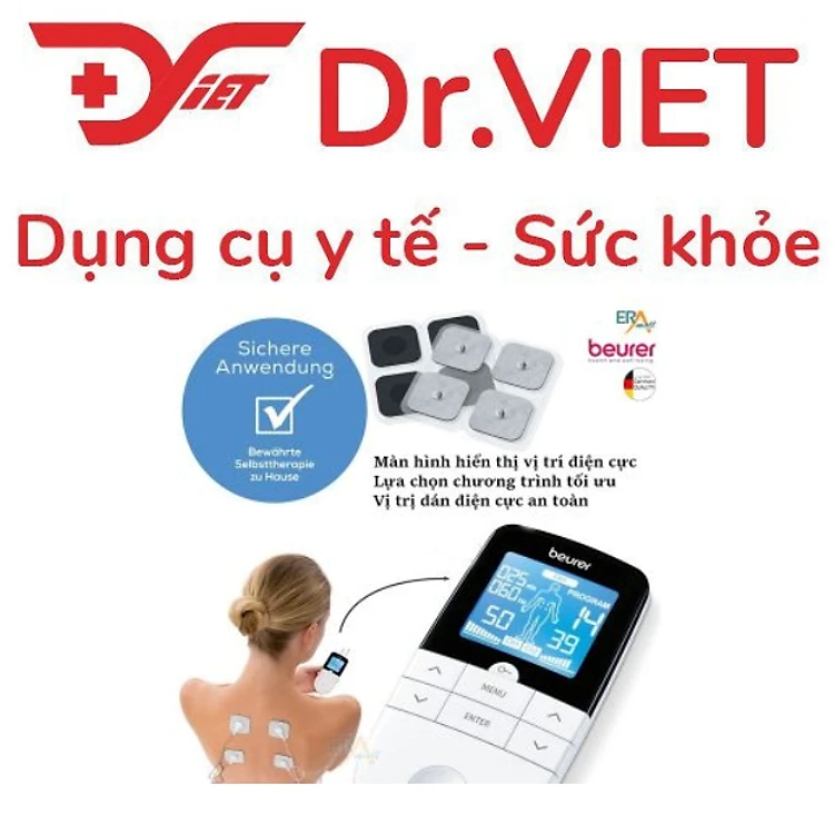 Máy điện châm kỹ thuật số 4 kênh, 8 điện cực Beurer EM 49 - Giảm nhức mỏi cơ, thư giãn giảm đau