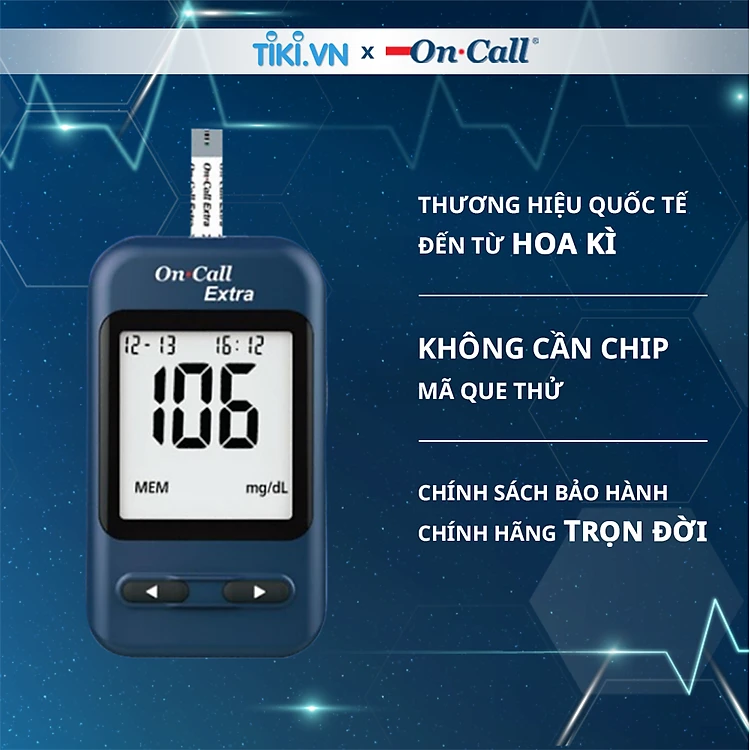 Máy Đo Đường Huyết On Call Extra Có Nhắc Nhở Đo, Đánh Dấu Trước & Sau Bữa Ăn - Chưa Có Que Thử