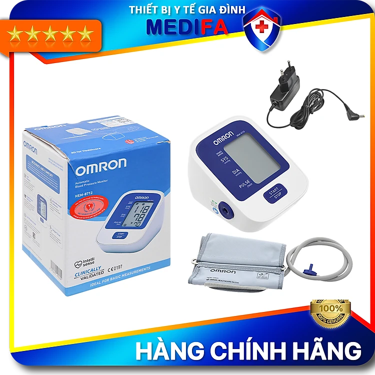 Máy Đo Huyết Áp Bắp Tay Omron HEM 8712 (Trắng Phối Xanh) + Tặng Bộ Đổi Nguồn Chính Hãng