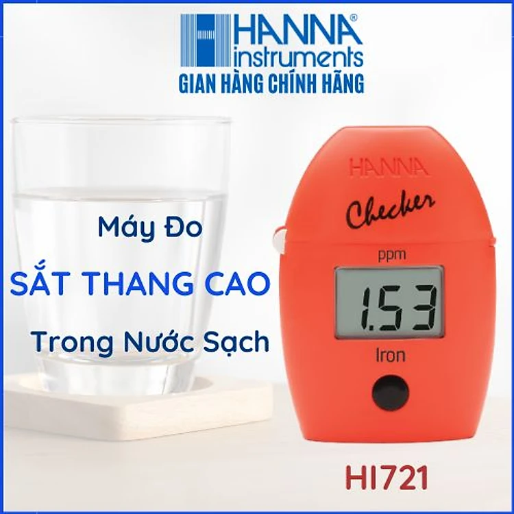 Máy Đo Nhanh Hàm Lượng SẮT Trong Nước Sạch Và Thủy Sản Nước Ngọt - Hanna - Checker HI721, tặng kèm đầy đủ phụ kiện cho 6 lần đo, bảo hành chính hãng, chỉ cần mua thêm bột thử để tiếp tục đo