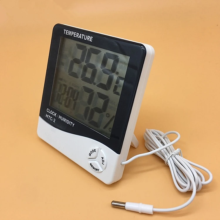 Máy đo nhiệt độ độ ẩm trong phòng Model HTC-2 vừa làm đồng hồ xem thời gian, vừa hiển thị chính xác nhiệt độ và độ ẩm tại nơi đặt chiếc máy này và nơi đặt cảm biến nhiệt độ rời ngoài thân máy.