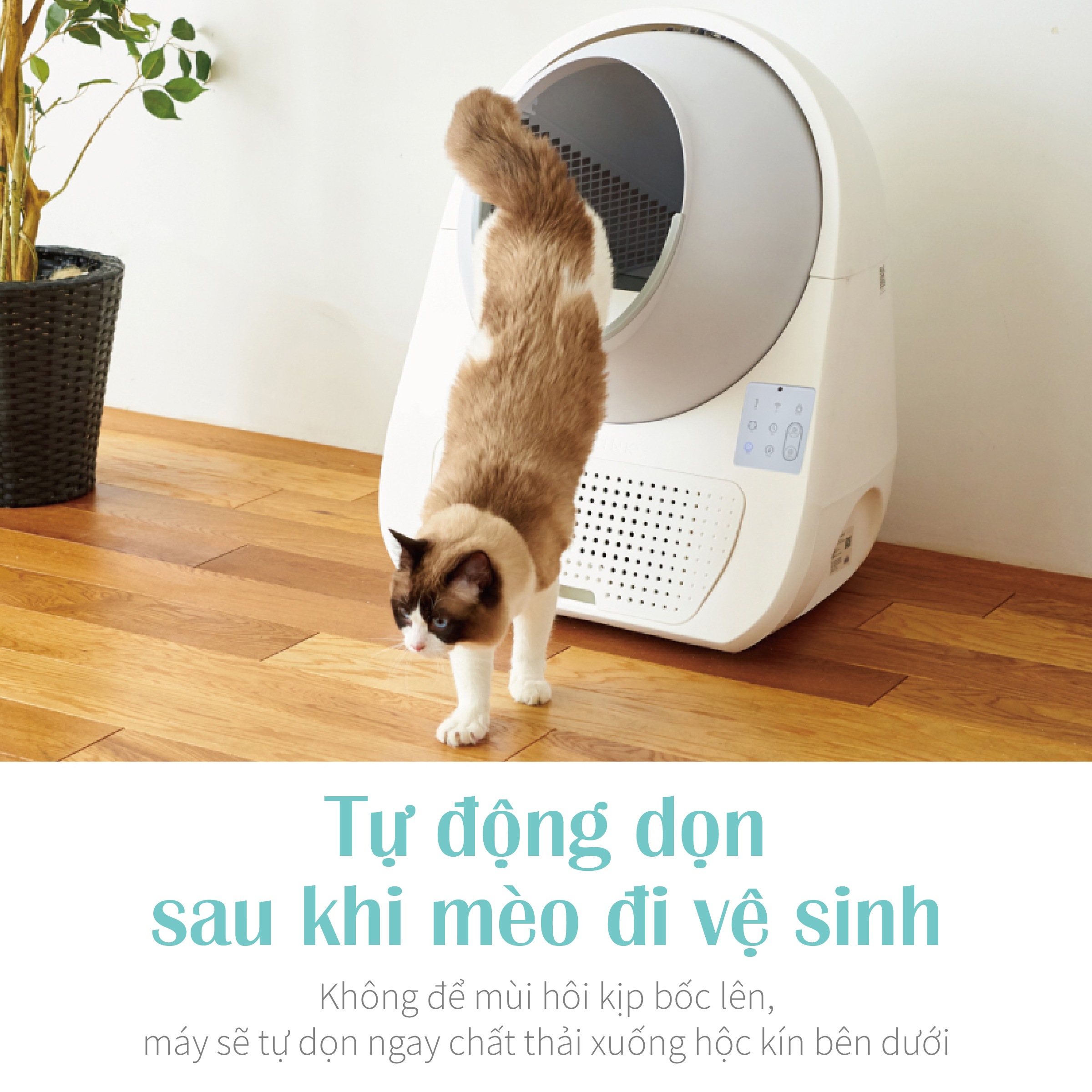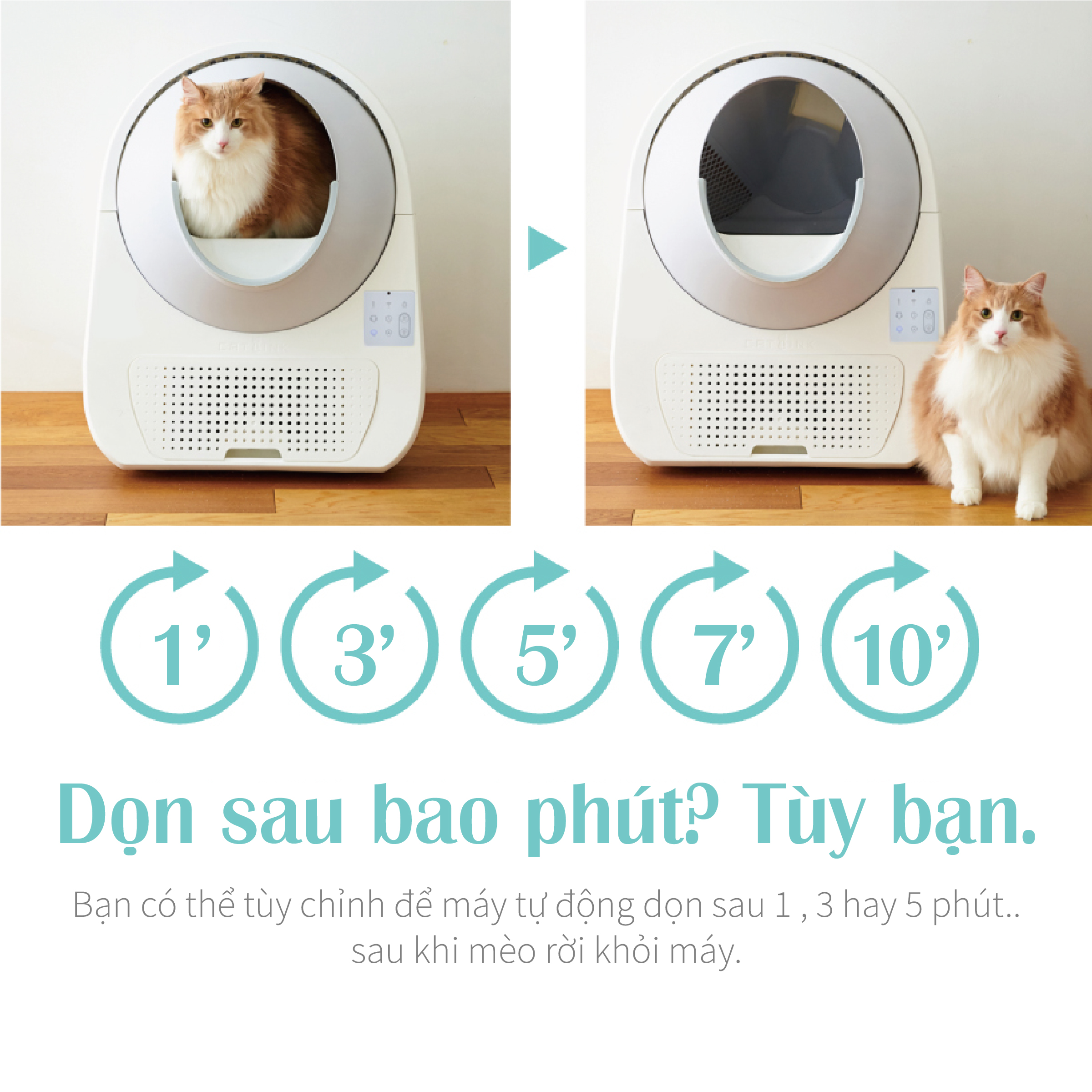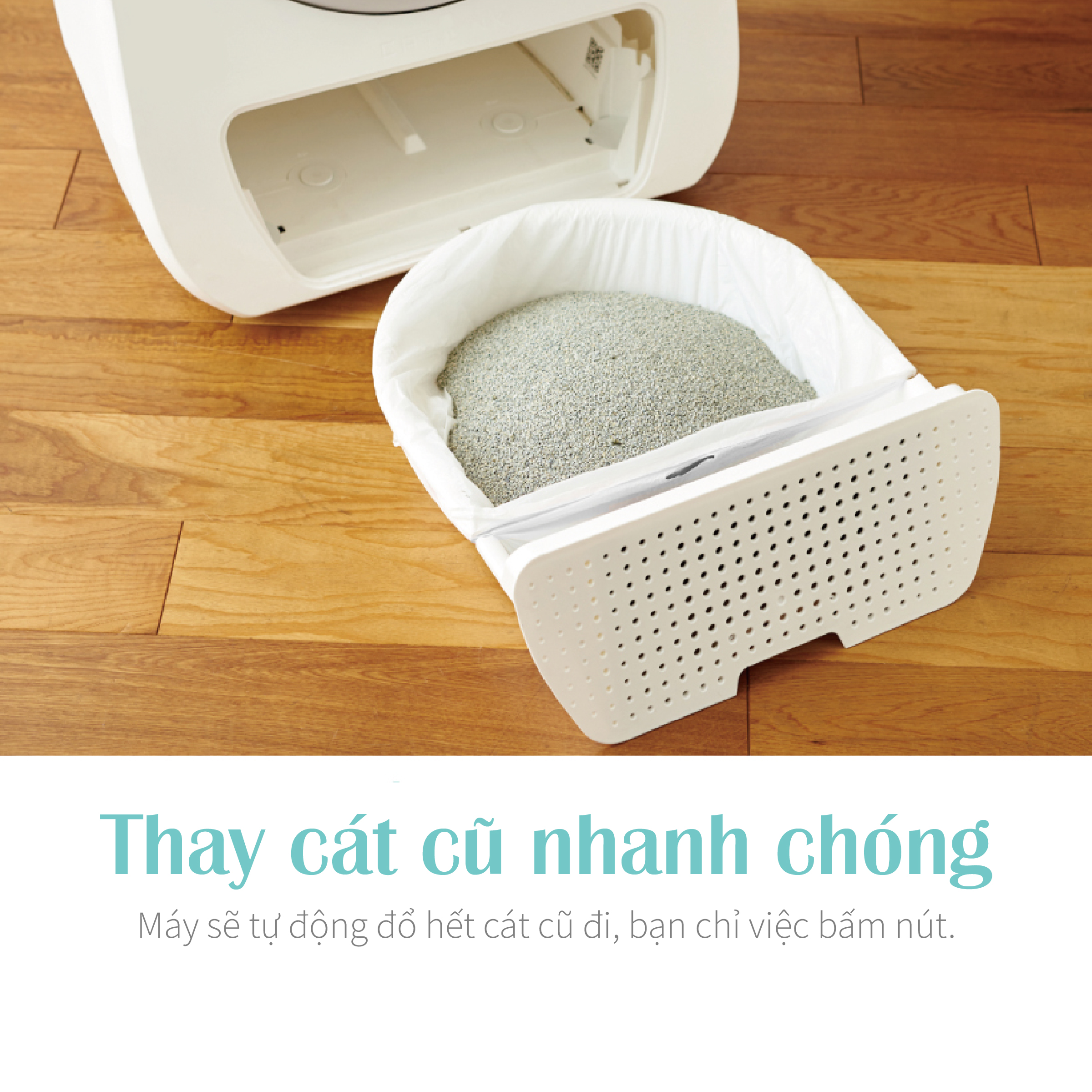 Đặc biệt có chế độ DỌN CÁT CŨ, chỉ cần bấm nút máy sẽ thải bỏ cát cũ dơ đi. Dễ dàng vệ sinh, an toàn không lo kẹt mèo.