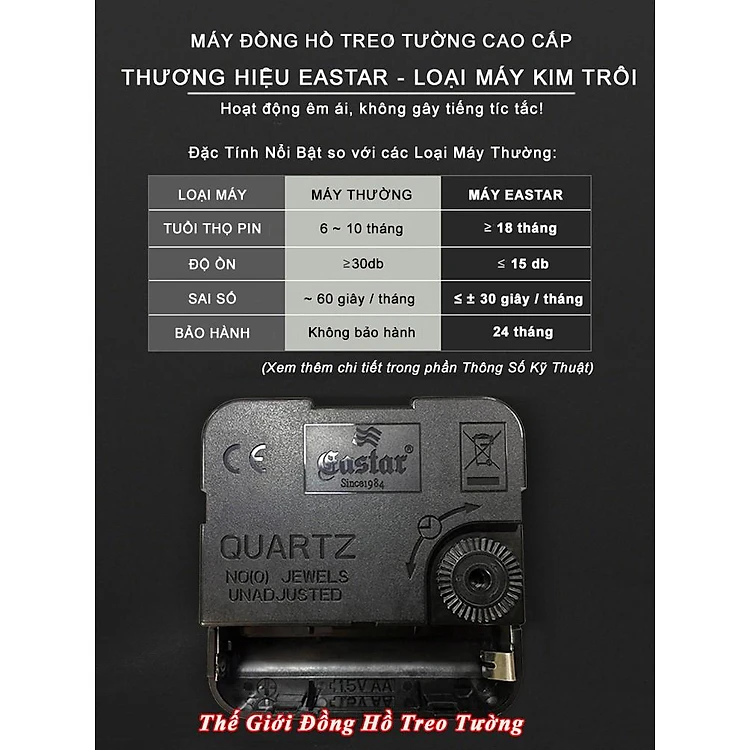 Máy Đồng Hồ Eastar Kim Trôi Độ Chính Xác Cao – Bộ Kim Đen Có Dạ Quang – Tặng Kèm Pin