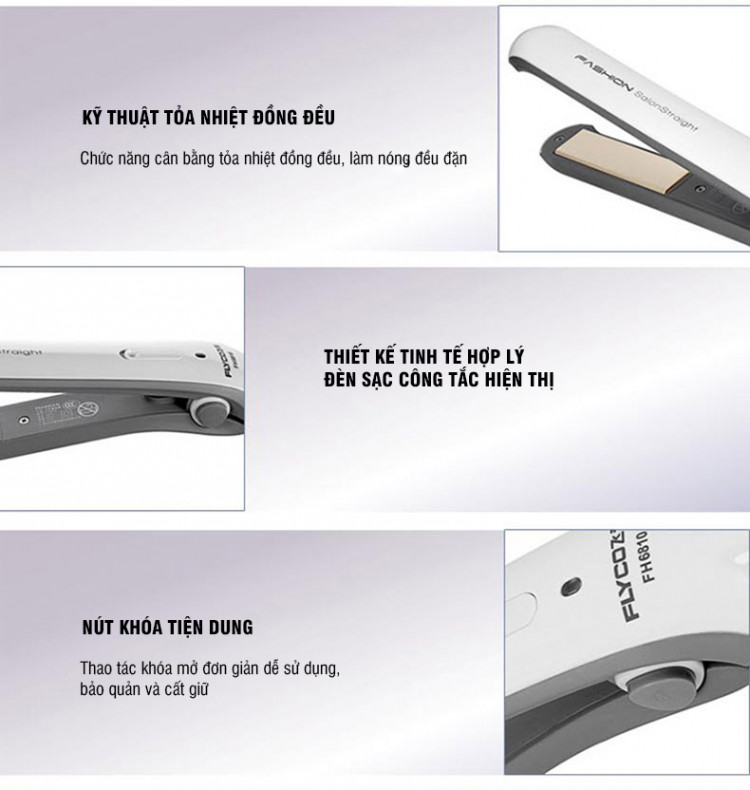 - Máy Duỗi Tóc Flyco FH6810 với công nghệ làm nóng cực nhanh từ miếng nhôm vàng, giúp chị em có kiểu tóc như mong đợi.