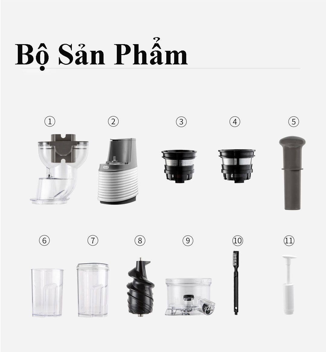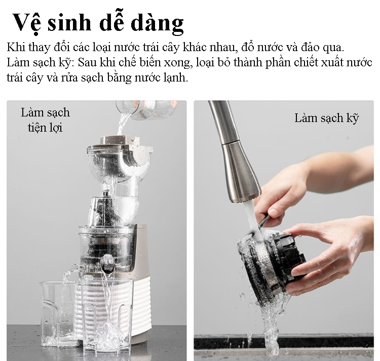 Các bộ phận của máy ép chậm BUD BJ32 được thiết kế có thể tháo rời hoàn toàn, giúp cho việc vệ sinh tổng thể sau khi ép xong một cách dễ dàng và tiện lợi