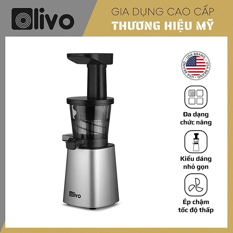 Máy ép chậm Olivo SJ210 - Ép hoa quả, trái cây, rau củ, Làm Kem, Làm Sữa Hạt, Sinh Tố. Ép kiệt bã tới 97%, thiết kế nhỏ gọn dễ vệ sinh, dễ dàng tháo lắp, màu sắc sang trọng và đặc biệt không chiếm nhiều diện tích. Máy ép chậm Olivo SJ210 sự lựa chọn tinh tế cho căn bếp nhà bạn