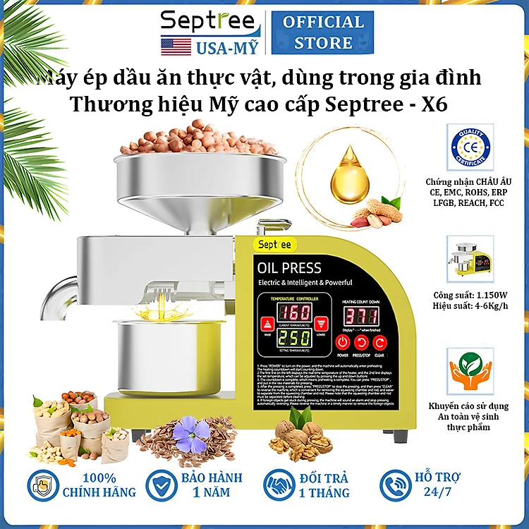 Máy ép dầu ăn thực vật dùng trong gia đình thương hiệu Mỹ cao cấp Septree X6 - Công suất 1150W - Hàng chính hãng (BH 1 NĂM)