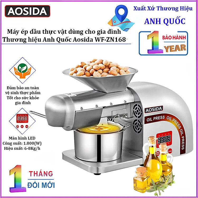 Máy ép dầu thực vật dùng cho gia đình, quán ăn. Thương hiệu Anh Quốc cao cấp Aosida - 888. Hàng chính hãng