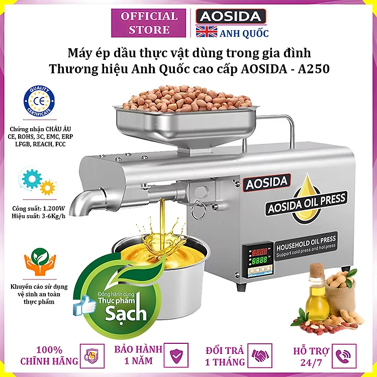 Máy ép dầu thực vật nóng và lạnh dùng trong gia đình thương hiệu Anh Quốc cao cấp AOSIDA A250 - Hàng Nhập Khẩu