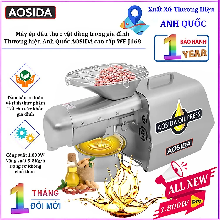 Máy ép dầu thực vật Nóng và Lạnh. Thương hiệu Anh Quốc AOSIDA cao cấp WF-J168 - Hàng chính hãng