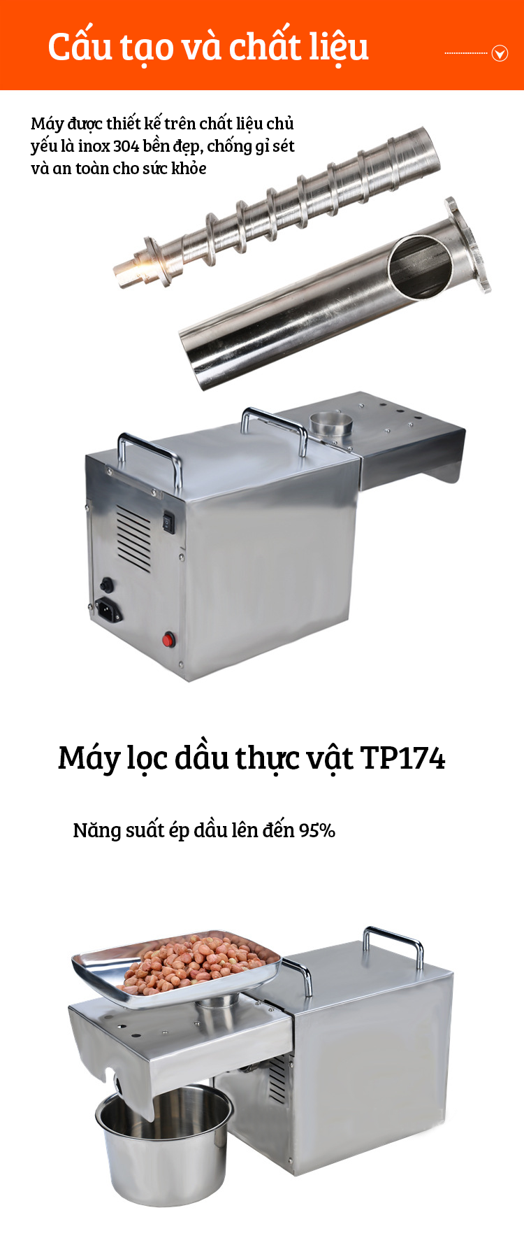 - Công suất của máy cao nên thời gian ép dầu nhanh, đỡ tiêu tốn về mặt thời gian.