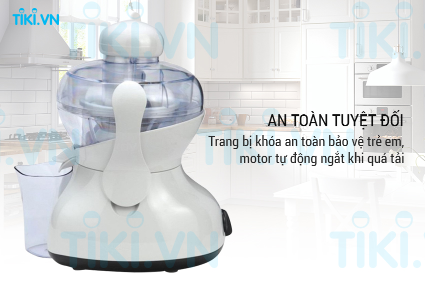 Được trang bị khóa an toàn bảo vệ trẻ em, motor tự động ngắt khi quá tải, an toàn và bền bỉ cho máy, thân máy được làm bằng chất liệu nhựa tổng hợp siêu bền, sử dụng an toàn, tiết kiệm điện và dễ dàng vệ sinh.