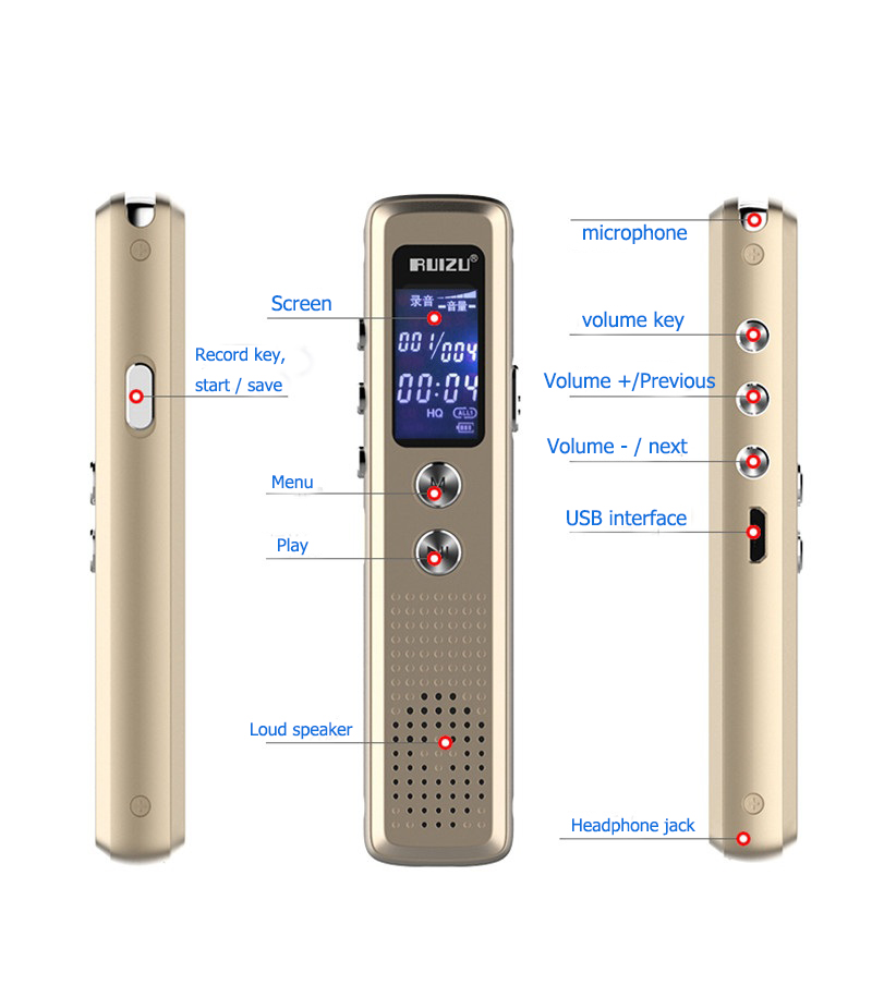 - Máy ghi âm stereo Ruizu K15 sử dụng micro ghi âm stereo định hướng, được trang bị khả năng cắt tần số thấp, ghi lại âm thanh rõ ràng, trung thực từ nguồn phát duy nhất.