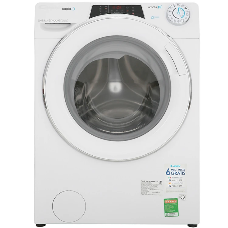 Candy RO 1496DWHC7/1-S phù hợp cho những hộ gia đình có trên 5 thành viên khi đáp ứng khối lượng quần áo đến tận 9 kg trong mỗi lần giặt.