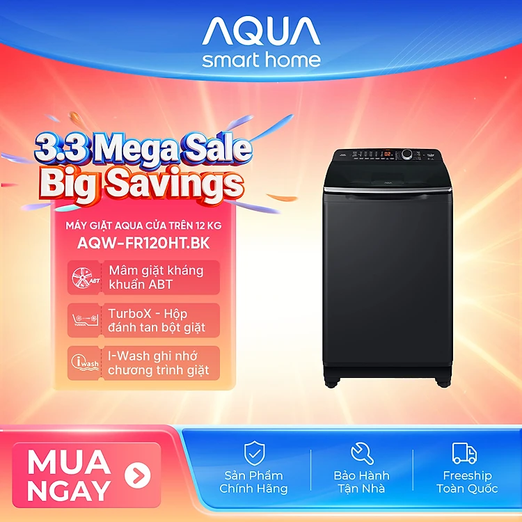 Máy giặt cửa trên Aqua 12KG AQW-FR120HT.BK - Bảo hành 2 năm - Hỗ trợ lắp đặt - Hàng chính hãng