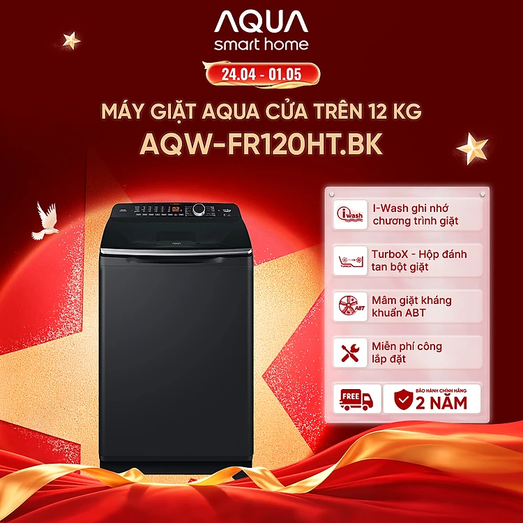 Máy giặt cửa trên Aqua 12KG AQW-FR120HT.BK - Bảo hành 2 năm - Hỗ trợ lắp đặt - Hàng chính hãng