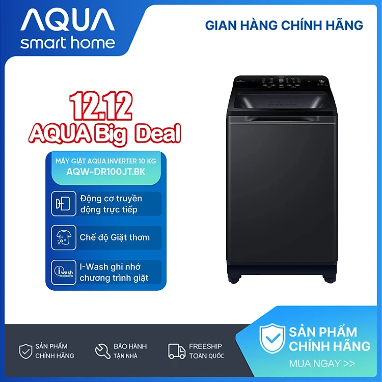 Máy giặt cửa trên Aqua Inverter 10 kg AQW-DR100JT.BK - Bảo hành 2 năm - Hỗ trợ lắp đặt - Hàng chính hãng