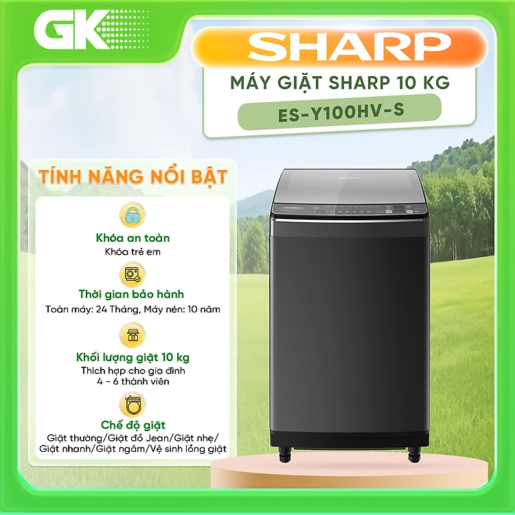 Máy giặt cửa trên Sharp 10kg ES-Y100HV-S - Hàng chính hãng( Chỉ giao tại HCM)