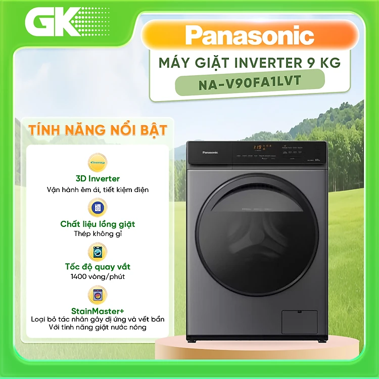 Máy giặt Cửa Trước Panasonic 9kg NA-V90FA1LVT - Giặt thông minh - Giặt diệt khuẩn - Tự động vệ sinh lồng giặt & vòng đệm - Hàng chính hãng