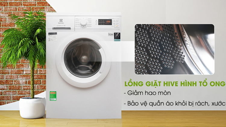 Máy có thiết kế dạng tổ ong độc đáo cùng các gờ cong mềm mại, lồng giặt Hive của máy giặt Electrolux luôn đảm bảo hiệu quả giặt sạch đến tối đa mà không gây rách, xước, cho quần áo được bền đẹp như mới với thời gian.