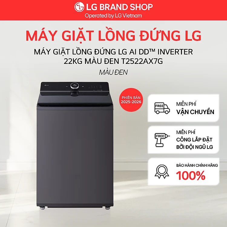 [Chỉ giao Miền Bắc/Nam] Máy giặt lồng đứng LG AI DD Inverter 22kg màu đen Graphite T2522AX7G - Hàng Chính Hãng