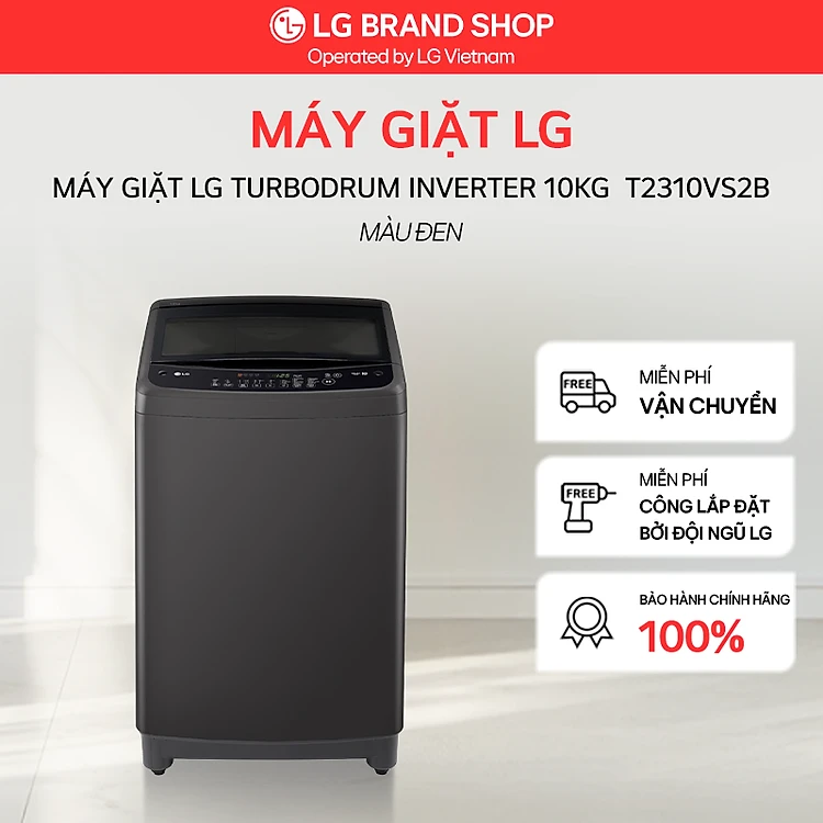 [Chỉ giao Miền Bắc/Nam] Máy giặt lồng đứng LG Inverter 10kg màu đen T2310VS2B - Hàng Chính Hãng