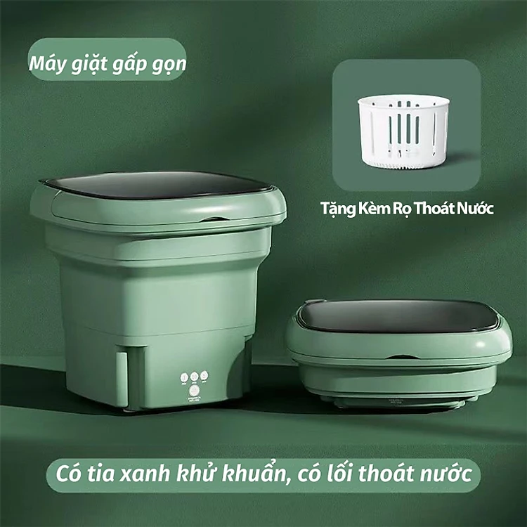 Máy Giặt Mini Clowash Máy Giặt Đồ Nhẹ Du Lịch Gấp Gọn Khử Khuẩn Bằng Ánh Sáng Xanh Có Nút Thoát Nước Tiện Lợi Tặng Kèm Lồng Giặt