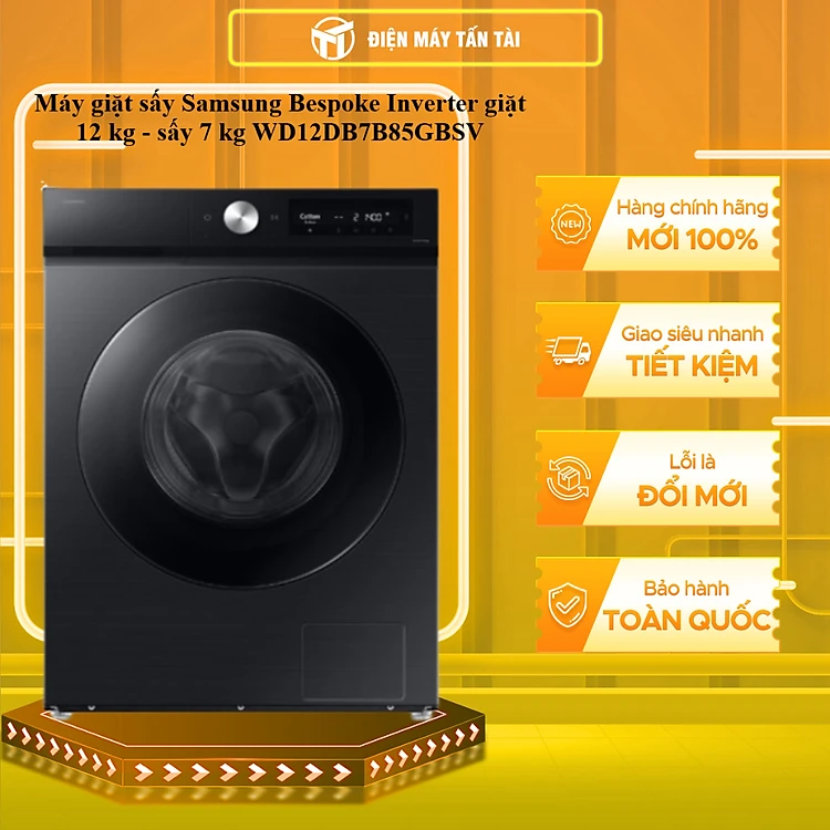 Máy giặt sấy SAMSUNG Bespoke AI™ WD12DB7B85GBSV với Ngăn giặt xả tự động, 12kg - Hàng chính hãng