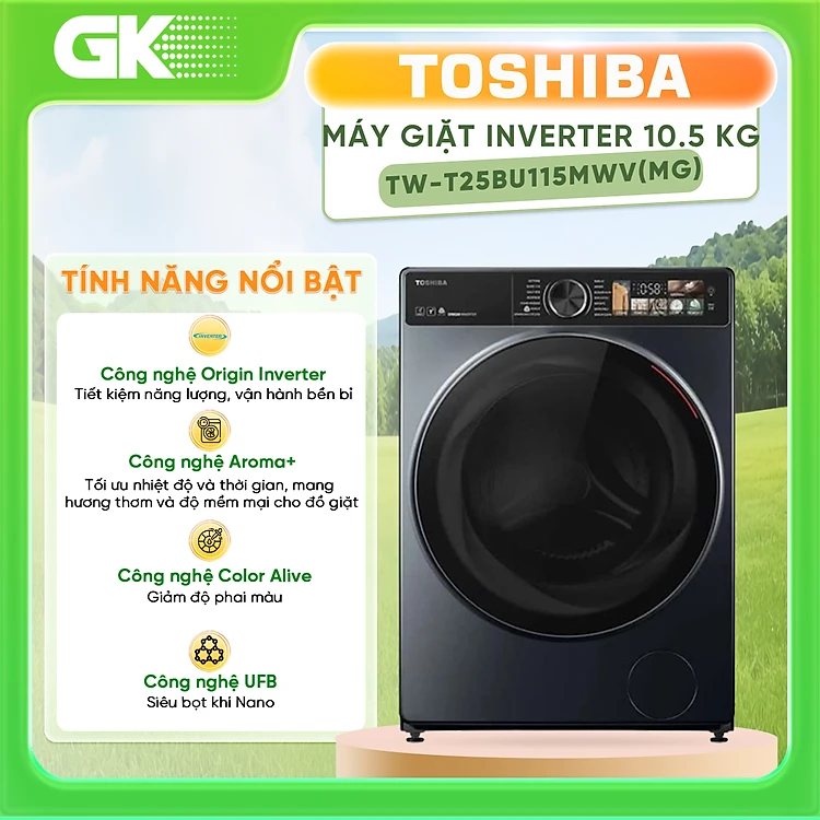 Máy giặt Toshiba Inverter 10.5 kg TW-T25BU115MWV(MG) - HÀNG CHÍNH HÃNG CHỈ GIAO HCM
