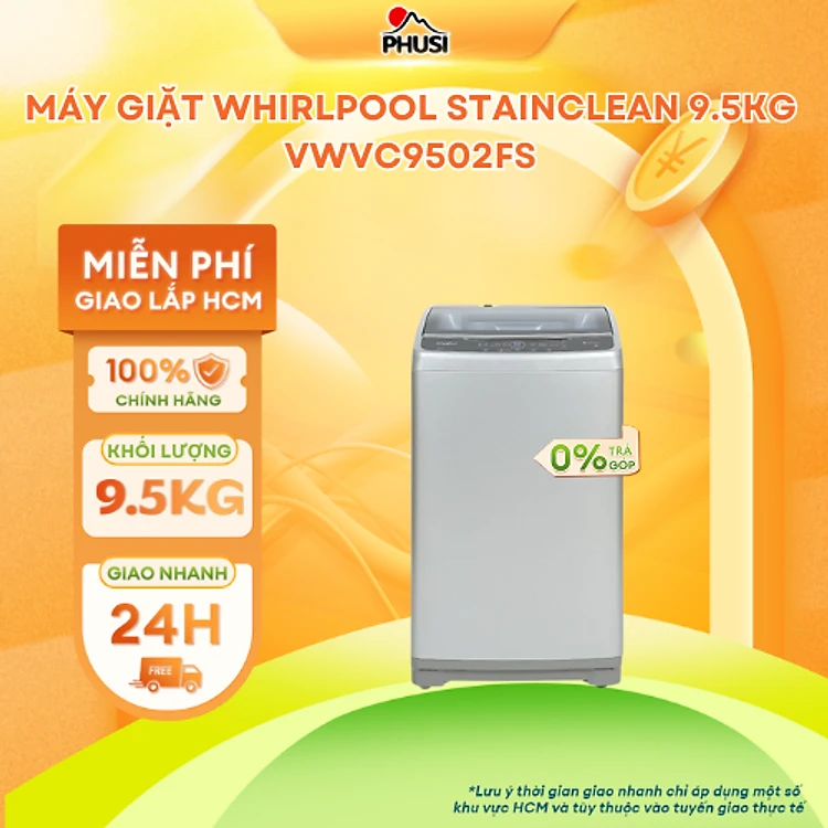 Máy giặt Whirlpool StainClean 9.5 kg VWVC9502FS - Hàng Chính Hãng