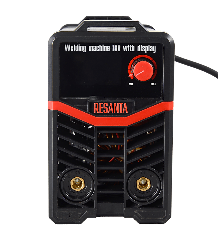 Máy hàn RESANTA/HUTER 160A (65/167) điều chỉnh dòng hàn linh hoạt từ 20A - 160A, có màn hình Led hiển thị dòng hàn, hàn được que 1.5mm - 4mm. Bảng điều khiển dạng núm vặn dễ điều chỉnh dòng hàn.