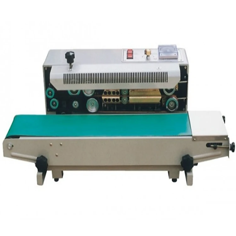 Sản phẩm thuộc dòng máy hàn liên tục tự động, thời gian hàn miệng túi nhanh chóng, có bộ phận làm mát nhanh giúp sản phẩm cần hàn miệng được chắc chắn hơn, không làm ảnh hưởng tới chất lượng đóng gói, mẫu mã đẹp. Máy hàn miệng dạng ngang phù hợp với những sản phẩm khó bị rơi, đổ, thời gian hàn nhanh chóng. Máy có băng tải chuyền dẫn đồng bộ, chỉ cần đưa sản phẩm vào mép của bộ phận hàn, còn lại máy sẽ tự động làm việc.